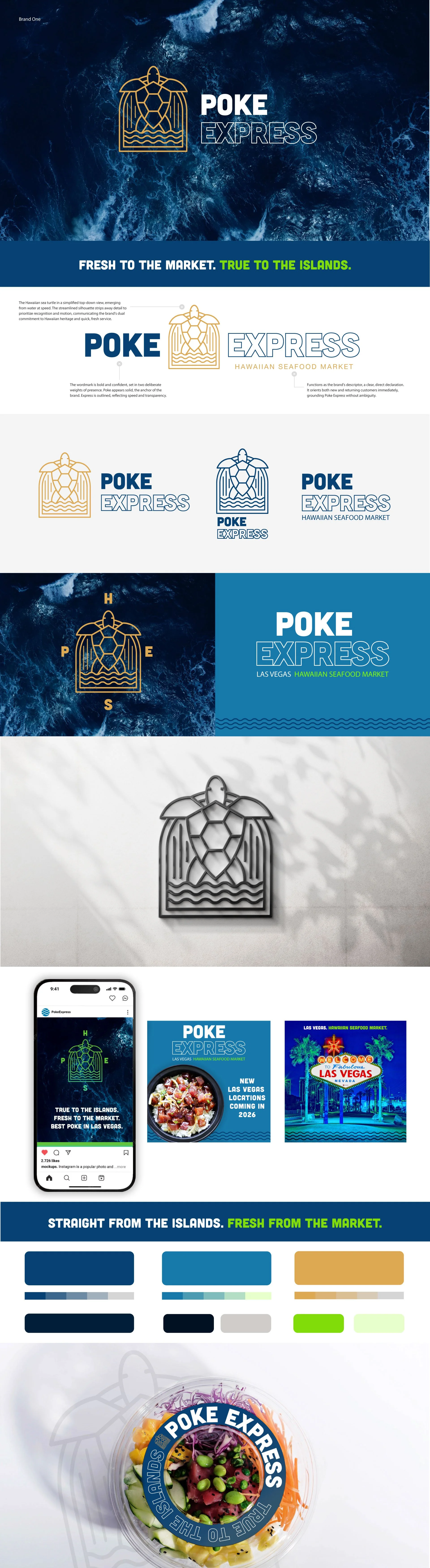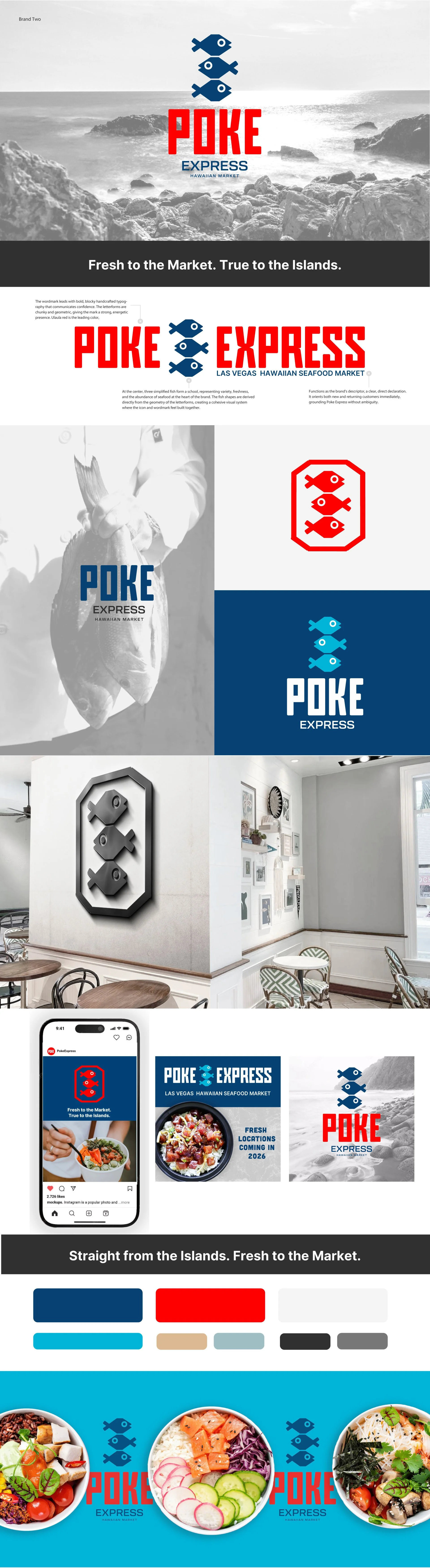 The redesign evolves Poke Express from a character-driven, illustrative logo into a refined and scalable visual identity. Where the original relied on motion cues and expressive typography to convey speed, the new direction distills the brand into something clean, modern, coastal, and authentically Hawaiian.